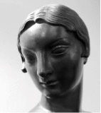 The young man offers us a bold, intense stare, his forehead creased in a slight frown just above his perfectly drawn eyebrows, his nose straight, his lips full and equally perfectly delineated. His features are framed in an ideal geometry yet they are handled with a naturalistic touch as though they were living, beating flesh. His hairstyle, on the other hand, is almost a badge, a sign, drawn and engraved with meticulous accuracy, transformed from pure realistic portraiture almost into a decorative motif, reminiscent in that respect of the hairstyle of Galatea (1926) in the Galleria Comunale d’Arte Moderna in Rome, a work probably carved after this one and one of the extremely fine nudes depicting women dancing for which the artist was universally admired: female nudes in sophisticated and vaguely Art Nouveau poses such as the Amphora or the Woman Reflected in the Water, or male nudes in athletic poses such as the Arrow (or Archer) and the later groups of athletes that once adorned the façade of the Stadio Flaminio.
