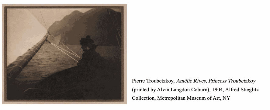 The almost definitive move to the United States saw the couple successfully settle for around two years in New York (although it is not excluded that they spent some time in London),12 where Troubetzkoy had already held an exhibition in the autumn of 1897, and then from 1898 in Washington, where the painter had a studio in the Corcoran building. One of the artist’s best-known portraits, the elegant Alice Barney in Whites and Browns (1898, Smithsonian Art Museum), dates from this period. The fame of both – Amélie “[...] as successful in her literary work as her husband in his artistic career”13 – and Troubetzkoy’s cosmopolitan allure and frequentation of American high society having further increased, preceded by the great success achieved in England, saw ladies, industrialists, politicians and members of the most important American families commissioning their portraits from him.14.The artist’s interests, however, were not limited to painting alone. If, probably influenced by his wife to whom the work was dedicated, Troubetzkoy published his first book The Passer-By15 in 1908, of more interest is his closeness to the artists gravitating around the magazine “Camera Work”, as evidenced by the photograph the painter took of his wife Amélie, printed in collaboration with Alvin Langdon Coburn and which soon became part of Alfred Stieglitz’s collection.16