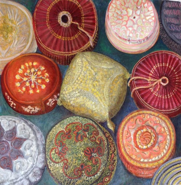 Un viaggio nel magico mondo d’Oriente. Un percorso che rende omaggio alla combinazione di colori e disegni ricchi di storia e di vita attraverso un percorso che riproduce abiti che prendendo forma nei suoi dipinti ci trascinano istantaneamente in mondi esotici e lontani. Questa la principale fonte d’ispirazione della pittura dell’eclettica artista francese Vèronique Bataille Heim.