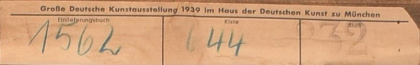 Label of the Great German Art Exhibition of 1939 in the House of German Art in Munich.